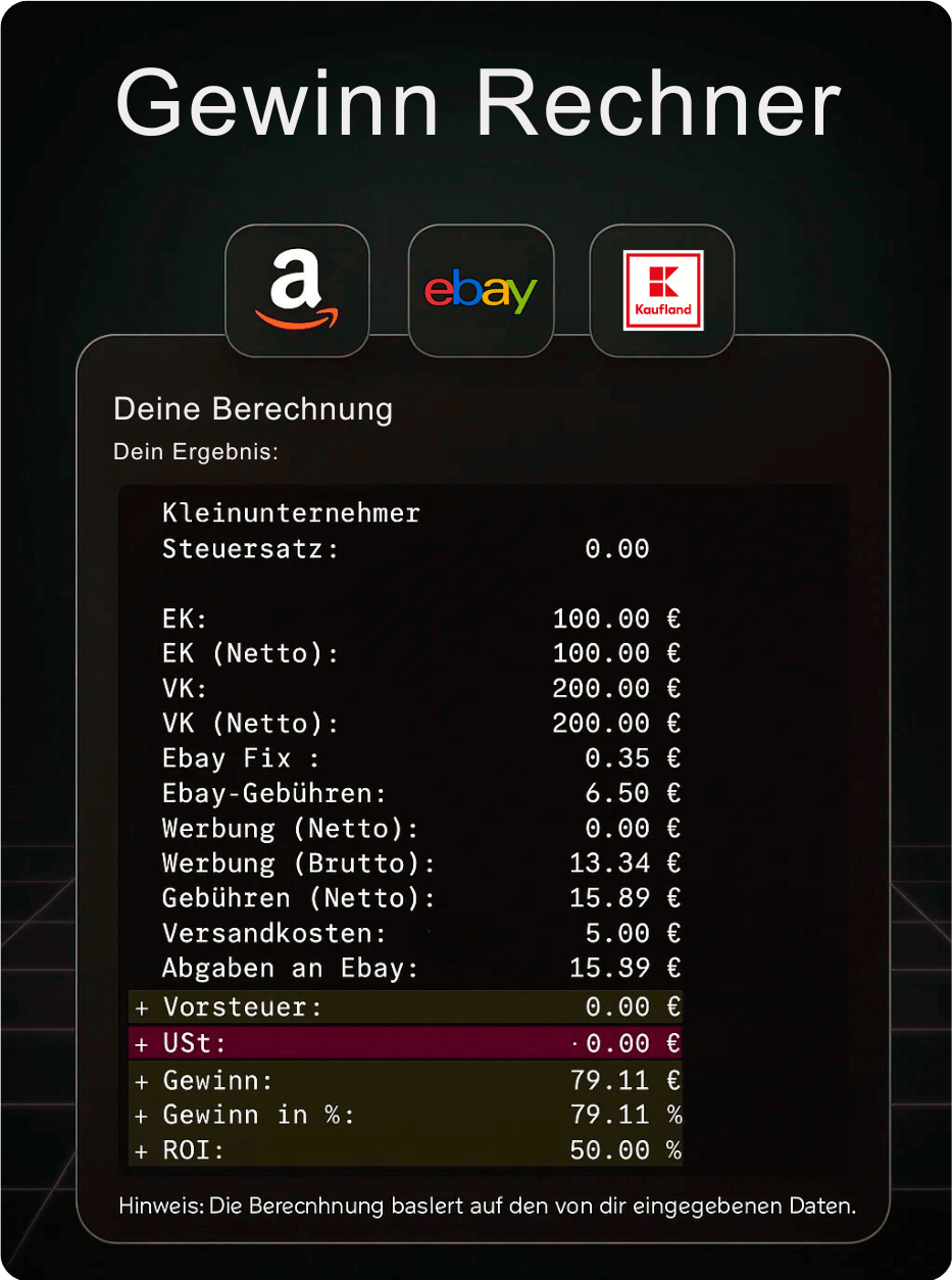 Berechne deinen Profit auf Amazon, Kaufland & eBay sekundenschnell.